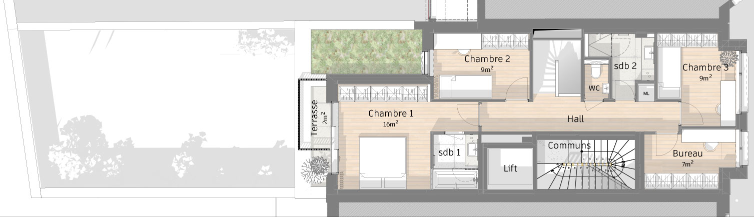 Ce duplex lumineux se compose de trois chambres spacieuses et d’un bureau, idéal pour le télétravail ou pour aménager selon vos besoins. La chambre principale est un véritable havre de paix avec sa salle de bain privative en suite et sa propre terrasse, vous garantissant intimité et confort.