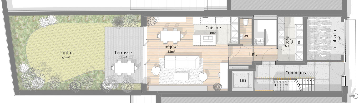 Ce duplex répond aux exigences les plus élevées en matière de performance énergétique. Il bénéficie d’une isolation importante. La ventilation double flux assure un renouvellement constant de l’air sans déperdition de chaleur, tandis que le chauffage est assuré par une pompe à chaleur individuelle, gage d’économies et de confort. Une production d’énergie photovoltaïque individuelle de XX kW vient compléter ce tableau, vous offrant une autonomie énergétique et des factures réduites. De plus, des toiles solaires extérieures en façade sud sont intégrées pour une protection solaire optimale et un confort thermique accru durant les mois chauds.